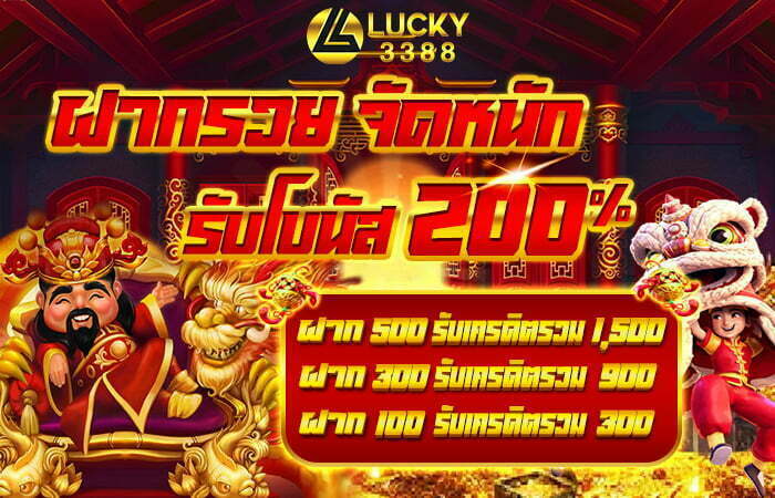 - ฝากรวย จัดหนัก รับโบนัส 200% สำหรับสมาชิกใหม่ ฝาก 300 รับเพิ่ม 600 ฝาก 500 รับเพิ่ม 1000 บาท และฝาก 1000 บาท รับเพิ่ม 2000 บาท