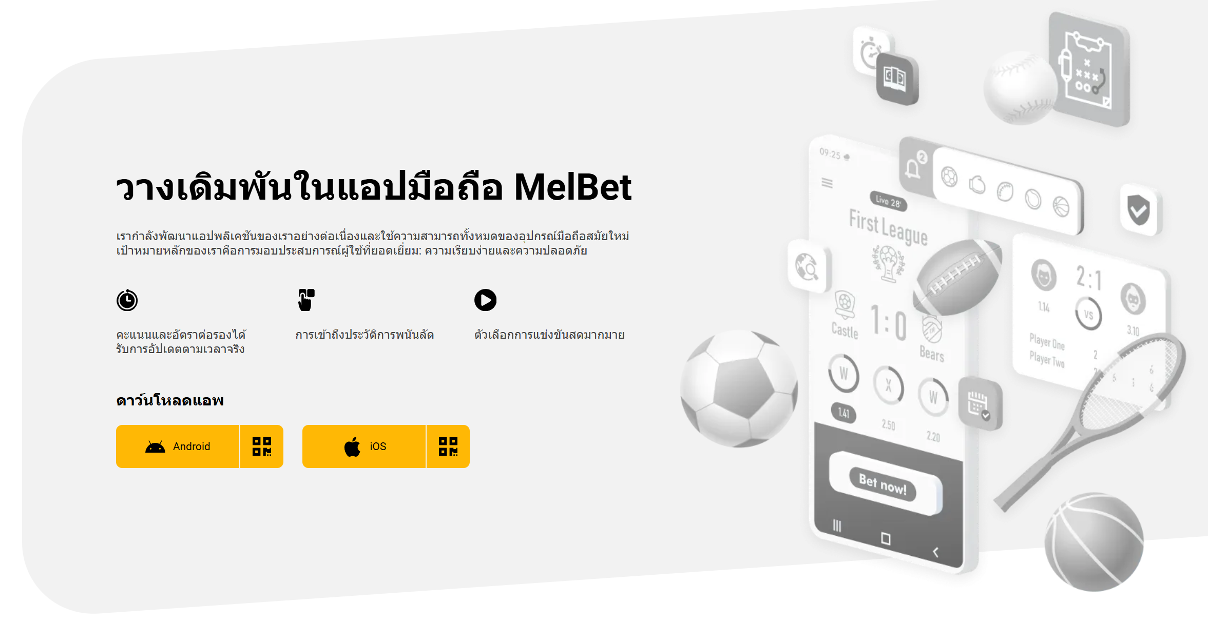 ในยุคดิจิทัลปัจจุบัน ความสะดวกสบายในการเล่นเกมระหว่างเดินทางถือเป็นปัจจัยสำคัญสำหรับคาสิโนออนไลน์ และ Melbet Casino โดดเด่นด้วยฟีเจอร์มือถือและแอปพลิเคชันที่ออกแบบมาเพื่อเพิ่มการมีส่วนร่วมของผู้เล่น คาสิโนแห่งนี้มอบประสบการณ์การใช้งานบนมือถือที่ราบรื่น ไม่ว่าคุณจะเข้าถึงผ่านเบราว์เซอร์บนมือถือหรือแอปพลิเคชันเฉพาะสำหรับแพลตฟอร์ม iOS และ Android ผู้เล่นจะได้พบกับอินเทอร์เฟซที่ปรับแต่งมาอย่างดี ซึ่งช่วยให้มั่นใจได้ว่าเกมคาสิโนทั้งหมด รวมถึงเกมคาสิโนสด เกมสล็อต และเกมโต๊ะ สามารถเข้าถึงได้ง่ายเพียงปลายนิ้วสัมผัส ข้อเสนอบนมือถือได้รับการออกแบบเพื่อมอบประสบการณ์การใช้งานที่ใช้งานง่าย สะท้อนถึงฟังก์ชันการใช้งานและอินเทอร์เฟซผู้ใช้ของเวอร์ชันเดสก์ท็อป ช่วยให้การเปลี่ยนจากอุปกรณ์หนึ่งไปยังอีกอุปกรณ์หนึ่งเป็นไปอย่างราบรื่น เรามาเจาะลึกฟีเจอร์เฉพาะสำหรับผู้ใช้ iOS และ Android และดูว่าฟีเจอร์เหล่านี้ส่งผลต่อประสบการณ์การใช้งานโดยรวมอย่างไร